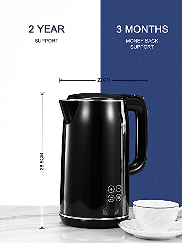 Bollitore Elettrico con Temperatura Regolabile 40-100 ℃,con Design a Doppia Parete, 1,7 Litri Teiera Elettrico da 2200 W con Display Touch Control a LED,Funzione di Riscaldamento per 4 Ore