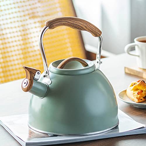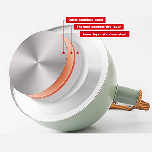 Bollitore con fischio in acciaio inossidabile 3L, bollitore per teiera con fischio per fornelli a gas a induzione, bollitore con fischio con manico Bollitore a gas antiscottatura verde chiaro