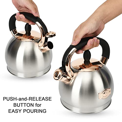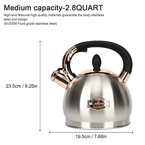 Bollitore a fischio, 2,8 l, in acciaio inox, con pratico manico per cucina, fornello a gas, per campeggio, fornelli a gas