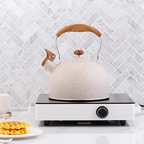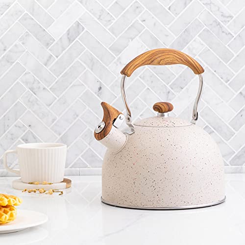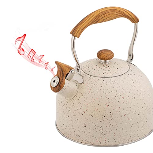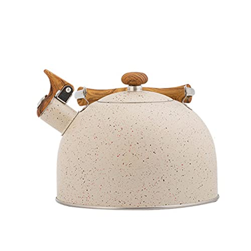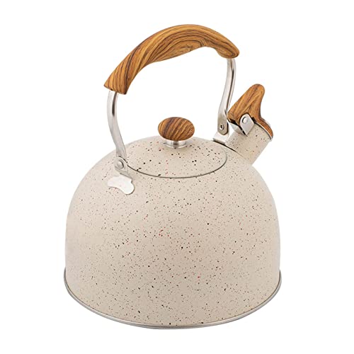 Bollitore a fischio da 2,5 l, bollitore per tè con venature del legno e manico anti-scottatura, in acciaio inox, per fornelli a induzione a gas, elegante teiera per acqua bollente