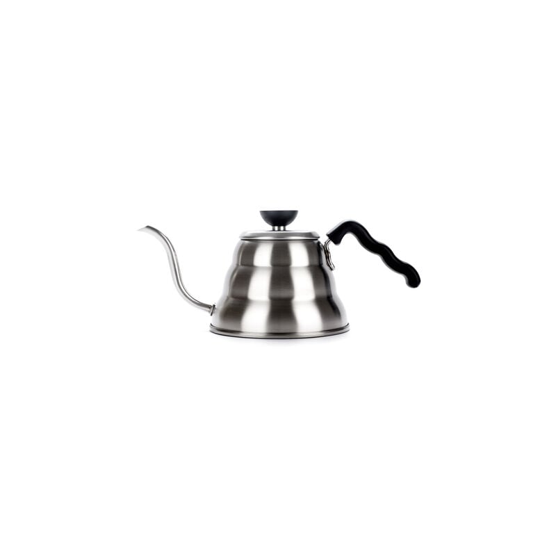 Il collo profilato offre il pieno controllo del flusso d'acqua. Grazie a questo, puoi influenzare il ritmo e il luogo in cui dirigi l'acqua. Il design minimalista e industriale e la precisione del versamento distinguono decisamente Buono Kettle dagli altri bollitori. La solida struttura in acciaio inossidabile con elementi in plastica rendono il Buono Kettle un bollitore per molti anni. Un ulteriore vantaggio è che può essere utilizzato su tutti i tipi di piastre riscaldanti. Il suo aspetto e la sua funzionalità sono stati apprezzati nel 2009 durante la fiera internazionale World Tea Expo, dove Buono Kettle ha vinto nella categoria miglior nuovo prodotto. Capacità totale: 1l Capacità utilizzabile: 600 ml È disponibile anche la versione elettrica da 0,8l: Bollitore Elettrico Hario Buono. Il diametro totale del fondo è di 14,4 cm, mentre il diametro della superficie di contatto con il terreno è di 12,5 cm. Il video seguente mostra un esempio di utilizzo del bollitore Hario Buono con