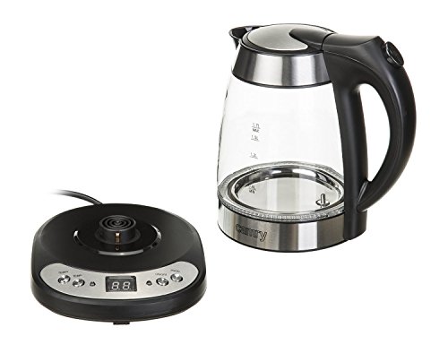 Bollitore in vetro e acciaio inossidabile con scelta di temperatura (55°C-100°C), 2.600 Watt, funzione di mantenimento della temperatura, esclusiva illuminazione a LED blu, senza fili, 1,7 litri