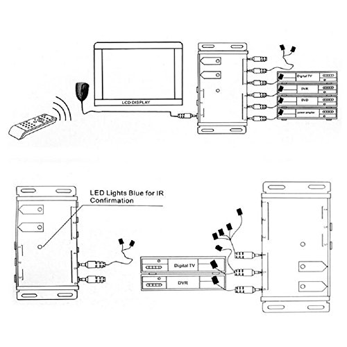 Ripetitore IR controlla fino a 10 dispositivi home theater tenuti dietro le porte dell'armadio o in un armadio chiuso con IR infrarossi Remote Control Extender Repeater System. Questo prodotto consente di controllare apparecchiature A/V con il telecomando IR esistente, come: amplificatore, decoder via cavo, ricevitore stereo, ricevitore TV satellitare, lettore CD, lettore DVD, lettore Blu-ray, ecc