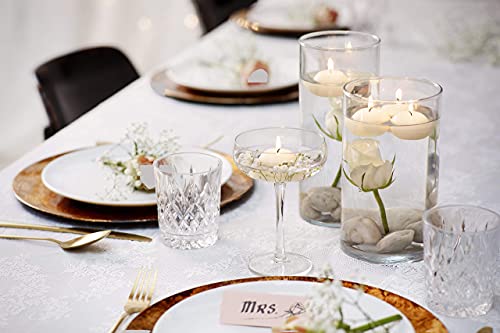 Rimane in piedi - Design anti-punta: supera i tuoi ospiti standard più elevati. Splendidamente realizzato con un design anti-punta proprietario, ogni set di candele si appollaia elegantemente in cima all'acqua, senza ribaltarsi, schiacciare o sputtering quando un tavolo viene urtato in occasione di eventi impegnativi. Le candele galleggianti ideali da 4,4 cm di diametro per centrotavola ai matrimoni.