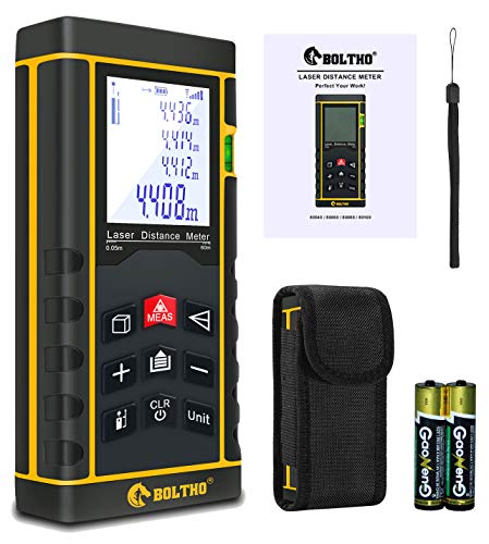 Boltho, misuratore laser da 60 m con livello elettronico, display LCD portatile ad alta precisione e retroilluminazione, misura distanza, area e volume, modalità pitagora batteria inclusa