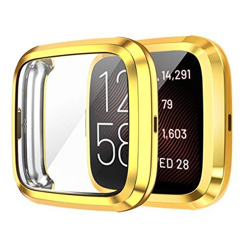 BoLuo 2 Pcs Screen Protector Cover per Fitbit Versa 2,Morbida Shell Plating PC Protector Frame Watch Copertura Resistente Custodia,Protettiva Watch Shell per Fitbit Versa 2/Versa2 SE (oro)