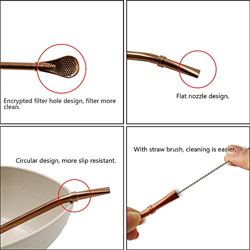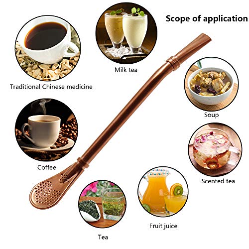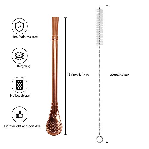 Bombilla per yerba mate, cannuccia a cucchiaio in acciaio inossidabile con filtro, cannuccia riutilizzabile, per tè in foglie, caffè, zuppe, bevande, con spazzola (oro rosa)
