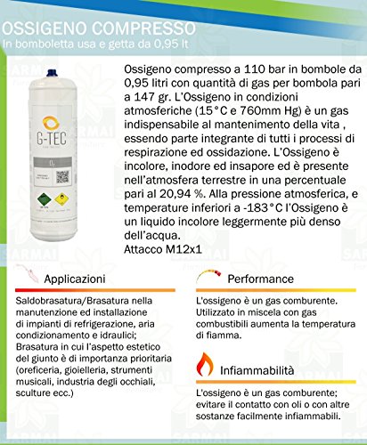 Bombola usa e getta monouso gas Ossigeno O2 110 bar 0,950 lt 147 gr NON MEDICO