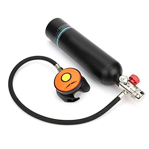 Bombola Portatile, Alluminio Aeronautico 1L Mini Bombola di Ossigeno da 15 a 20 min Respiratore Subacqueo Bombola Bombola da Sub Polmone Kit Attrezzatura da Sub con Doppio Filtro e Cassaforte(Nero)