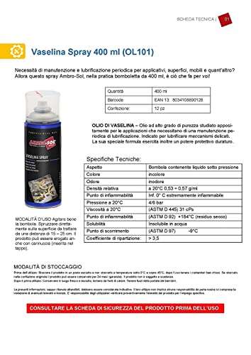 ✅ RICEVERAI - 12 Bombolette di Vasellina Spray da 400ml composta da olio incolore ad alto grado di purezza, studiato appositamente per le applicazioni che necessitano di una manutenzione periodica di lubrificazione.