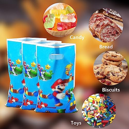 【Materiale di alta qualità】Mario Sacchetti per caramelle per feste Realizzati in materiale di alta qualità, impermeabile e resistente, leggero, inodore e riutilizzabile. Mario Bracciali a Scatto costituiti da un nucleo di ferro di alta qualità e sono rivestiti in PVC all'esterno che non graffia la pelle.