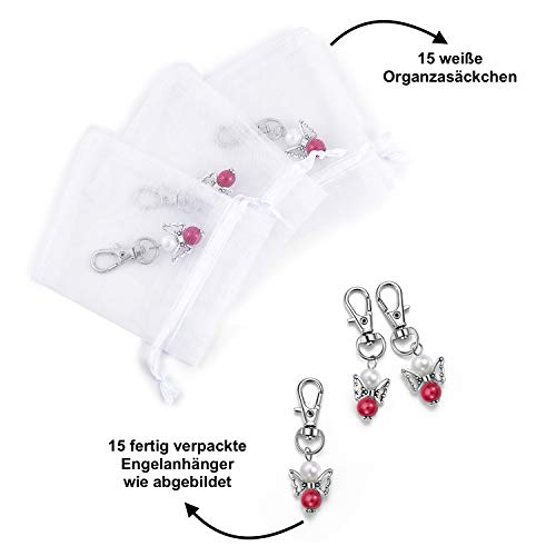 Dimensioni: Lunghezza: 5,5 cm (ciondolo e moschettone). Colori delle perle: rosso e bianco. Dimensioni sacchetto di organza: circa 7 x 8,5 cm. I sacchetti in organza offrono ancora abbastanza spazio per altri piccoli oggetti come confetti, caramelle, piccoli bigliettini o un piccolo omaggio.