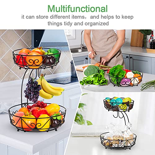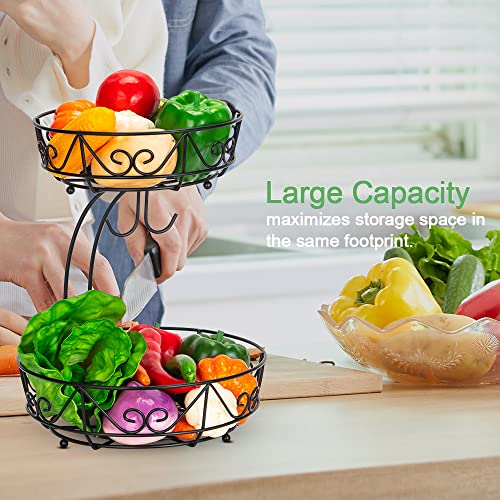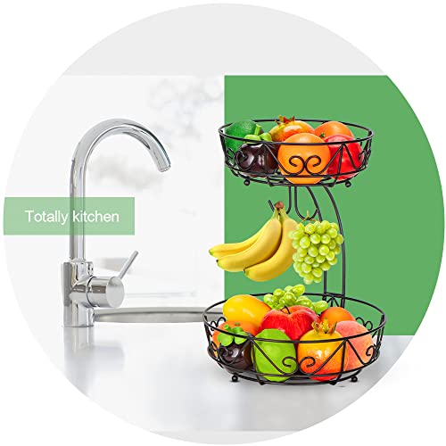 CONSERVA UNA VARIETÀ DI FRUTTA - Questo cesto di frutta a 2 livelli è perfetto per tutta la frutta: mele, pere, limoni, lime, pompelmi, kiwi, banane, ecc. Conserva la maggior parte della frutta o verdura fresca in un unico posto di facile accesso. Utilizzate i cestini in una disposizione impilata a due livelli o come due cestini separati, uno con un pratico gancio per appendere le banane.