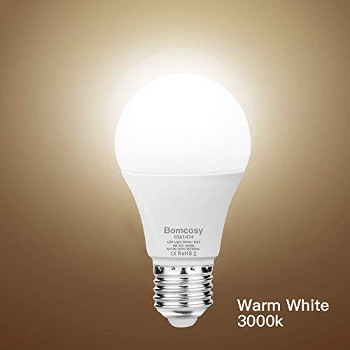 Bomcosy Lampadina con Sensore Crepuscolare Integrato E27 9W Lampadine Bianca Calda 3000K Automatico On/Off per Garage Corridoio Veranda