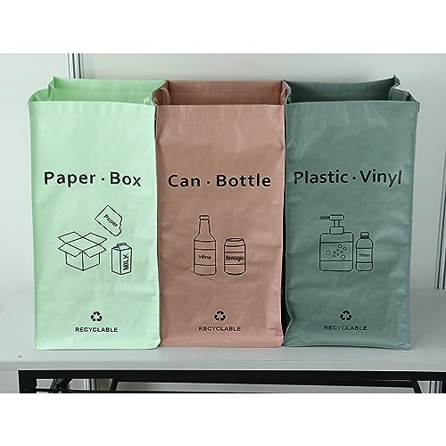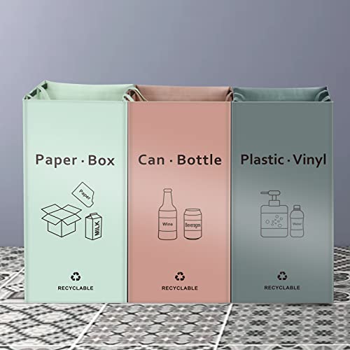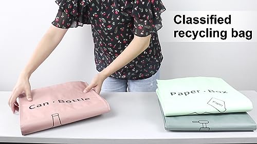 BOMEI PACK Borse Raccolta Differenziata - Set da 3 Contenitori per Carta, Plastica e Vetro - Cestino Spazzatura -rosa verde grigio Bidone da Interno