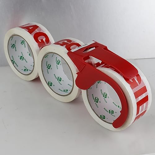 BOMEI PACK Nastro adesivo, nastro per pacchetti, nastri per spedizioni e imballaggi di pacchetti, 3 rotoli, 48 mm x 66 m (Red fragile)