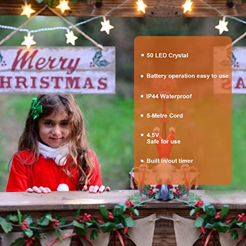 ★2 Pezzi di catena luminosa a stella a LED: La catena leggera ha 2 pezzi di catena luminosa a stella, 1 pezzo di catena leggera con 50 stelle LED, 2 pezzi di catena luminosa in totale con 100 stelle LED. La lunghezza di 1 catena di luci è di 5 metri. Le catene luminose a stella LED bianco caldo creano un'illuminazione eccellente e un'atmosfera calda.