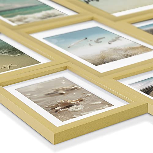 Bomoe Set di 12 Cornici per foto Ocean 12x 13x18cm - Cornici foto collage - collage portafoto - Cornici foto multiple da Parete - oro - cornici in legno - portafoto e portaimmagini