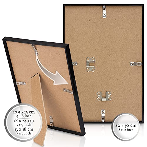 Bomoe Set di cornici per foto 18 pezzi Paradise 6x 10x15cm / 4x 13x18cm / 4x 18x24cm / 4x 20x30cm - Cornice multipla in legno e vetro plastica - Cornice per foto Nero
