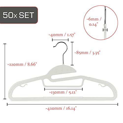 Bomoe set di 50 grucce - avorio - gancio appendiabiti universale per giacche, vestiti e pantaloni con rivestimento in gomma antiscivolo, asta per pantaloni - Edvin