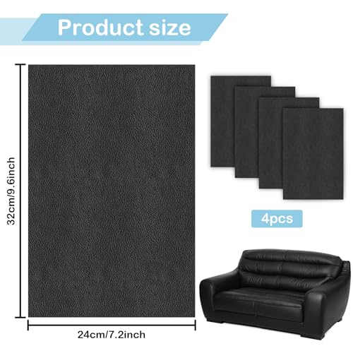 Bomtop 4 Pezzi Pelle Artificiale Rinnovamento Toppa Adesiva, Rivestimento Ecopelle Autoadesivo, Patch Riparazione in PU Pelle, Per Divani, Seggiolino Auto, Mobili Ristrutturazione (24 x 32cm-Nero)
