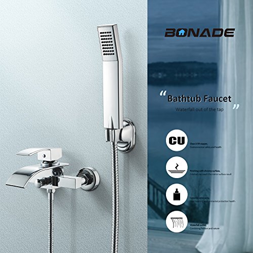BONADE Rubinetto Vasca Bagno Set Doccia a cascata con Rubinetto Miscelatore Vasca Esterno, Cromo