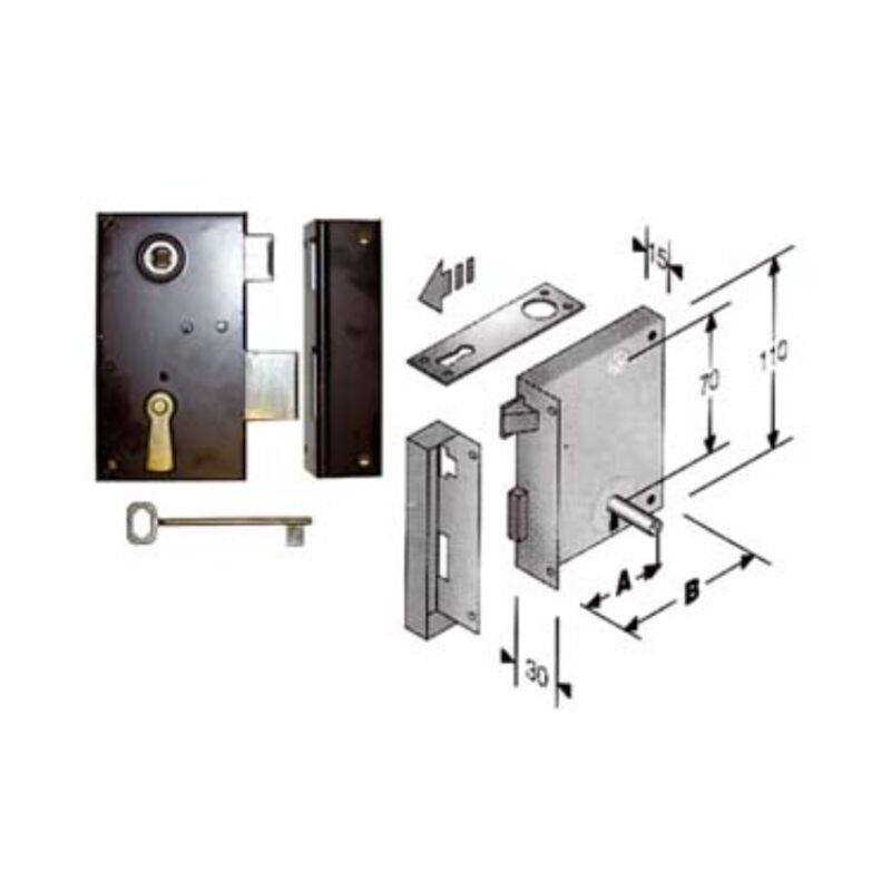 Entrata mm.35 lunghezza mm.60 sx scocco e incontro in metallo verniciato marrone, 2 mandate, quadro maniglia mm.6 - in dotazione: 1 mostrina nottolino/chiave e 1 chiave Categoria merceologica: Serrature, chiusure di sicurezza e accessori - Sicurezza - Serrature per cantine