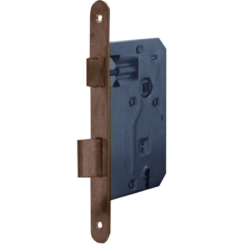 Bonaiti serratura legno patent inf. b/tondo art.42- f/bronzato e.45 Serratura da infilare, scrocco reversibile, quadro mm. 8, distanza mm. 70, bordo tondo, senza contropiastra. Articolo produttore: 48042045ME