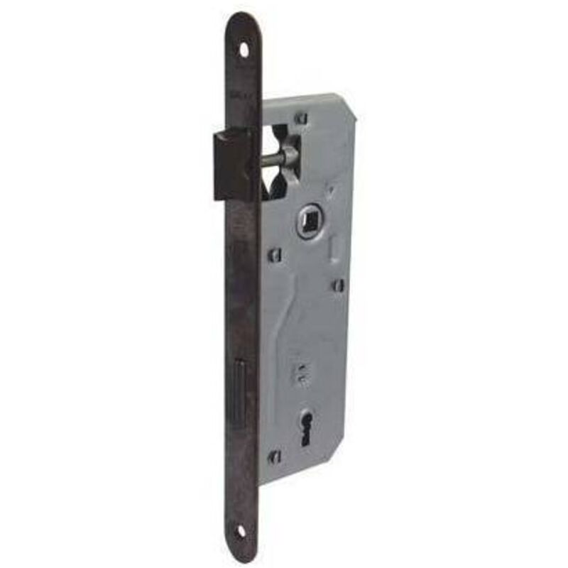 Scrocco reversibile, con richiamo quadro maniglia Mm. 8. Chiusura con catenaccio a 2 mandate. Frontale da Mm. 22x240. Altezza scatola Mm. 168,5. In dotazione: 1 chiave patent.