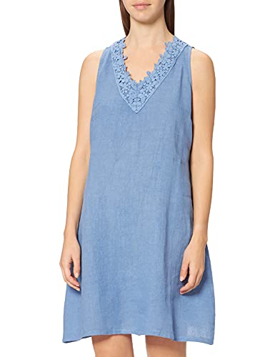 Bonamaison Abito Smanicato con Ricamo sullo Scollo a V. Casual Dress, Blue Jeans, L Womens