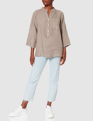 Bonamaison Camicia Tunica in Puro Lino con Tasche Lunghe Shirt, Taupe Chiaro, S Womens