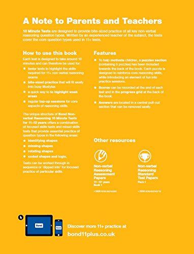 Bond 11+: Non-verbal Reasoning: 10 Minute Tests: 11+-12+ years