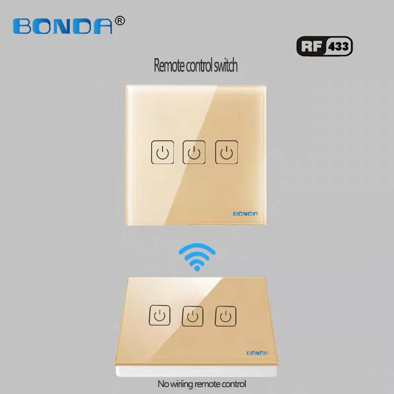 BONDA EU The smart home touch switch induction type wireless stickers double control or multiple control Wall Switch 1Gang 2 way