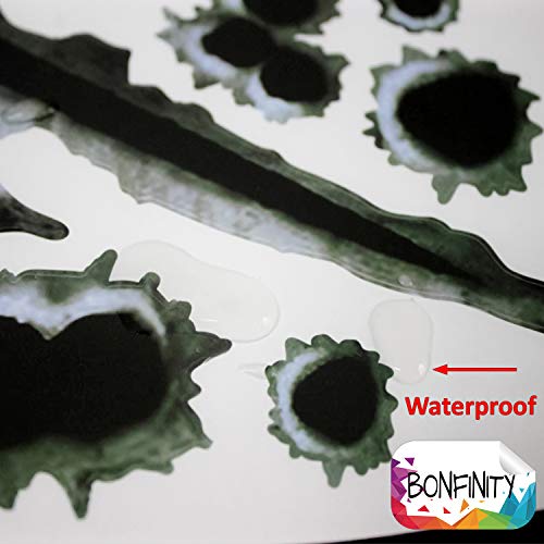 BONFINITY Adesivi Fori di Proiettile Esterni per Auto Moto Scooter Camion Casco | 42 Stickers Buchi Proiettili e Graffi in Vinile misti da Tuning Impermeabili e Resistenti Autoadesivi