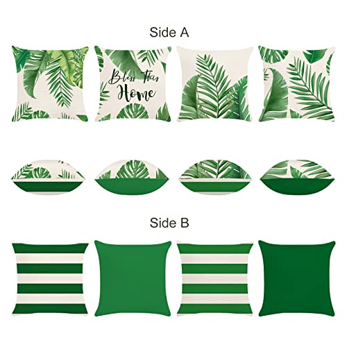 Design a due lati: Il modello di fodere per cuscino foglie tropicali è disponibile sul entrambe le parti (sul retro è 2 diversi colori verdi e motivo a 2 strisce verdi), adatta per divano, auto, panca, sedia, ufficio, decorare soggiorno e camera da letto, Grande regalo per ogni vacanza.