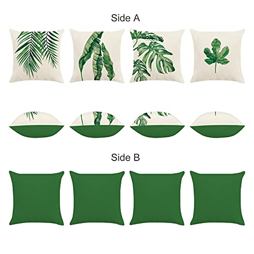 Bonhause Federe per Cuscini Foglie Tropicali 45x45cm Copricuscini Decorativi Foglia di Palma Verde Poliestere Biancheria Primavera Federa per Cuscino Divano Letto Casa Decorazione Set di 4