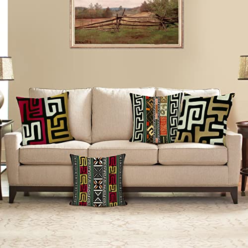 Bonhause Federe per Cuscini Geometrica Tribale Africana 45x45cm Copricuscini Decorativi Etnico Poliestere Biancheria Federa per Cuscino Divano Letto Casa Decorazione Set di 4