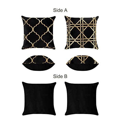 Bonhause Federe per Cuscini Geometrico Oro 45x45cm Copricuscini Decorativi Stampa d'oro Velluto Morbido Nero Federa per Cuscino Divano Letto Casa Decorazione Set di 2