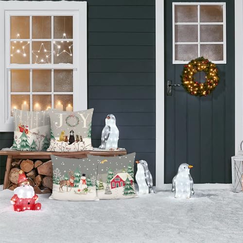 Bonhause Federe per Cuscini Inverno Natale Grigio 45 x 45 cm Copricuscini Decorativi Pino Nevoso Pupazzo di Neve Renna Poliestere Biancheria Federa per Cuscino Casa Decorazione Set di 4