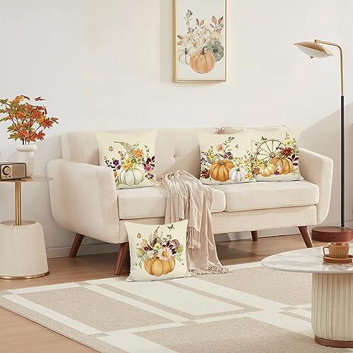 Bonhause Federe per Cuscini Zucche Autunnali 45 x 45 cm Copricuscini Decorativi Fiori Ringraziamento Velluto Morbido Federa per Cuscino Divano Letto Casa Giardino Decorazione Set di 4