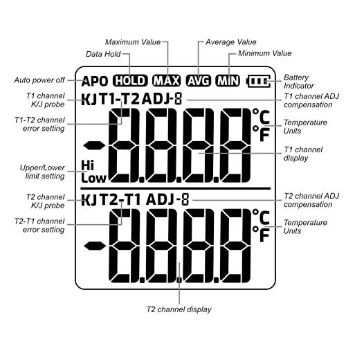 Bonkshire Termometro un Termocoppia Termometro Digitale Tipo K con 4 Termocoppie, -328-2500℉ Campo di Misura Termometro HVAC