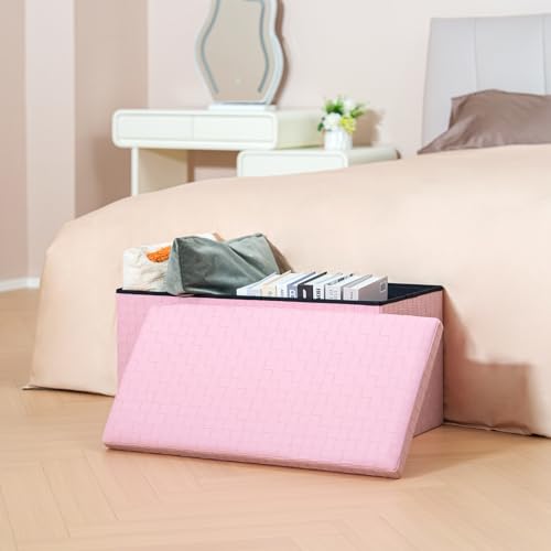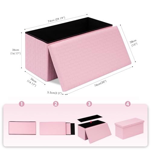 Bonlife Sgabello Basso Tavolino Contenitore Da Salotto Poggia Piedi Per Divano Pouf Pieghevole Divano Ecopelle Baule Tavolino 76x38x38cm Rosa
