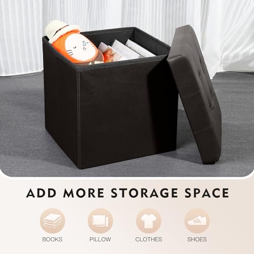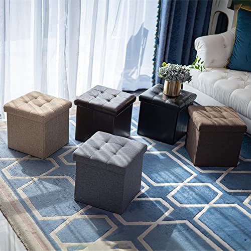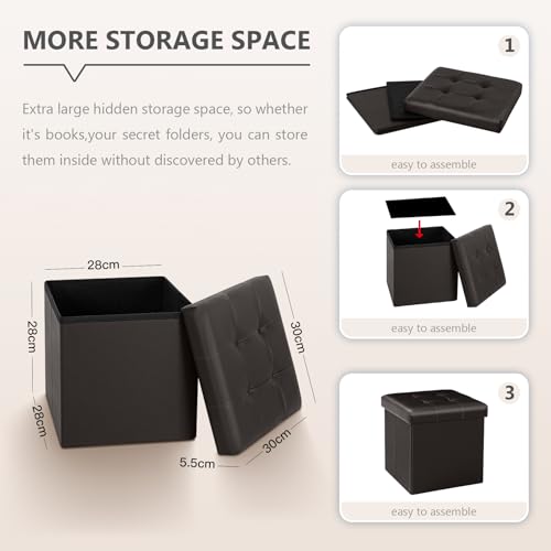 Bonlife Sgabello Comodino Puff Contenitori Piccoli Tavolino Salotto Pouf Contenitore Ecopelle Portaoggetti Pouf da Camera Quadrato 32x32x32cm Marrone