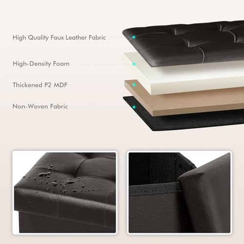 ✅ Struttura resistente e durevole: realizzata in MDF CARB P2, questa panca pouf può contenere fino a 120 kg. È realizzata in spugna spessa ad alta resilienza imbottita da 20 mm, morbida e confortevole. La superficie è realizzata in similpelle, impermeabile e facile da pulire.