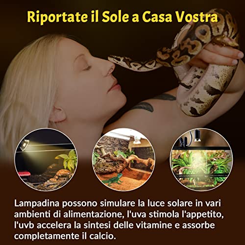 【Ampia applicazione】 Lampadina termica UVA adatta a una varietà di rettili e anfibi, tra cui tartarughe, lucertole, draghi barbuti, serpenti, rane, iguane, tartarughe, chuckwalla, ecc.