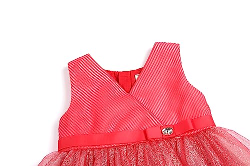 BONNY BILLY Vestiti Bambina Eleganti Cerimonia Principessa Tulle Glitter Senza Maniche 5-6 Anni Rosso