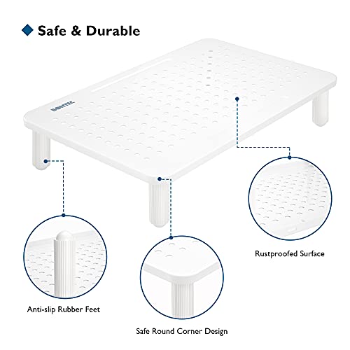 BONTEC Supporto per Monitor, Supporto per Monitor di Computer con Piattaforma a Rete per Laptop, Computer, iMac, PC, Rialzo Monitor con Slot per La Gestione dei Cavi, Fino a 25KG(Bianco)