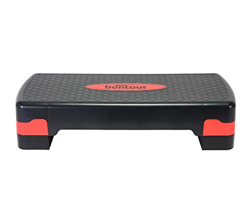 BONTOUR Stepper Aerobica, Step da Aerobica per Allenamento a casa, Regolabile in Altezza, Dispositivo di Allenamento per Il Fitness con Superficie Strutturata Antiscivolo (Nero/Rosso)