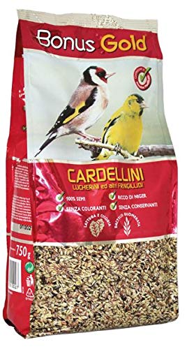 BONUS GOLD MANGIME CARDELLINI 750 GR LUCHERINI E FRINGILLIDI Ricco di Niger 100% Semi