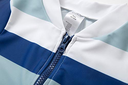 BONVERANO Costume Intero Neonato Manica Corta Protezione UV 50+ con Cuffia(Blu-Bianca,18-24mesi)